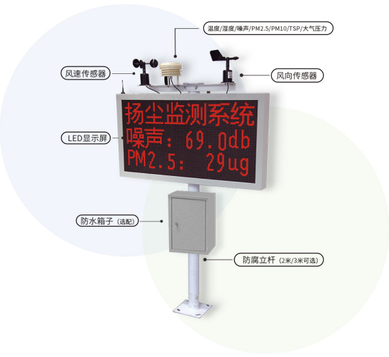 各測試點的測試數(shù)據(jù)通過無線通訊直接上傳到監(jiān)測后臺,可據(jù)客戶需求將數(shù)據(jù)實時展示在現(xiàn)場LED屏、平臺PC端及移動端,方便環(huán)境部門實時監(jiān)測數(shù)據(jù),并及時做出決策。提高施工現(xiàn)場環(huán)境管理的及時性,實現(xiàn)了對環(huán)境的準確監(jiān)測防治環(huán)境污染,維護城市的碧海藍天。
